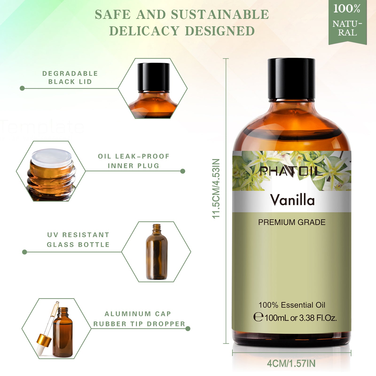 - 100ml/3.38oz. UV-resistant amber glass bottle with a dropper
